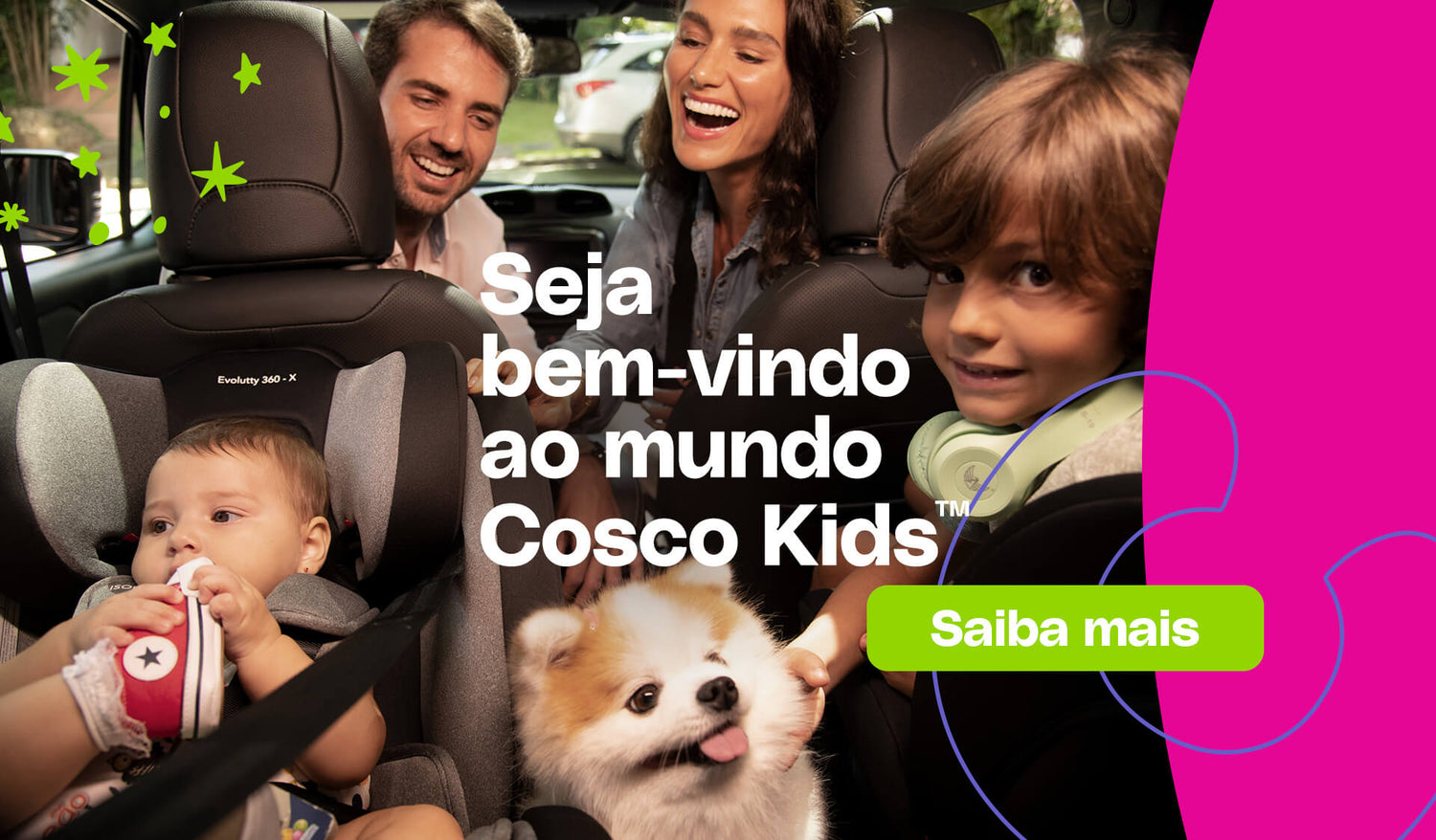 A Cosco KidsTM é uma marca americana que há 70 anos se faz presente na vida de muitas famílias que se enxergam em nós. Somos um pouco barulhentos, enérgicos e muito divertidos – vida real com uma bela pitada de boas risadas, né?