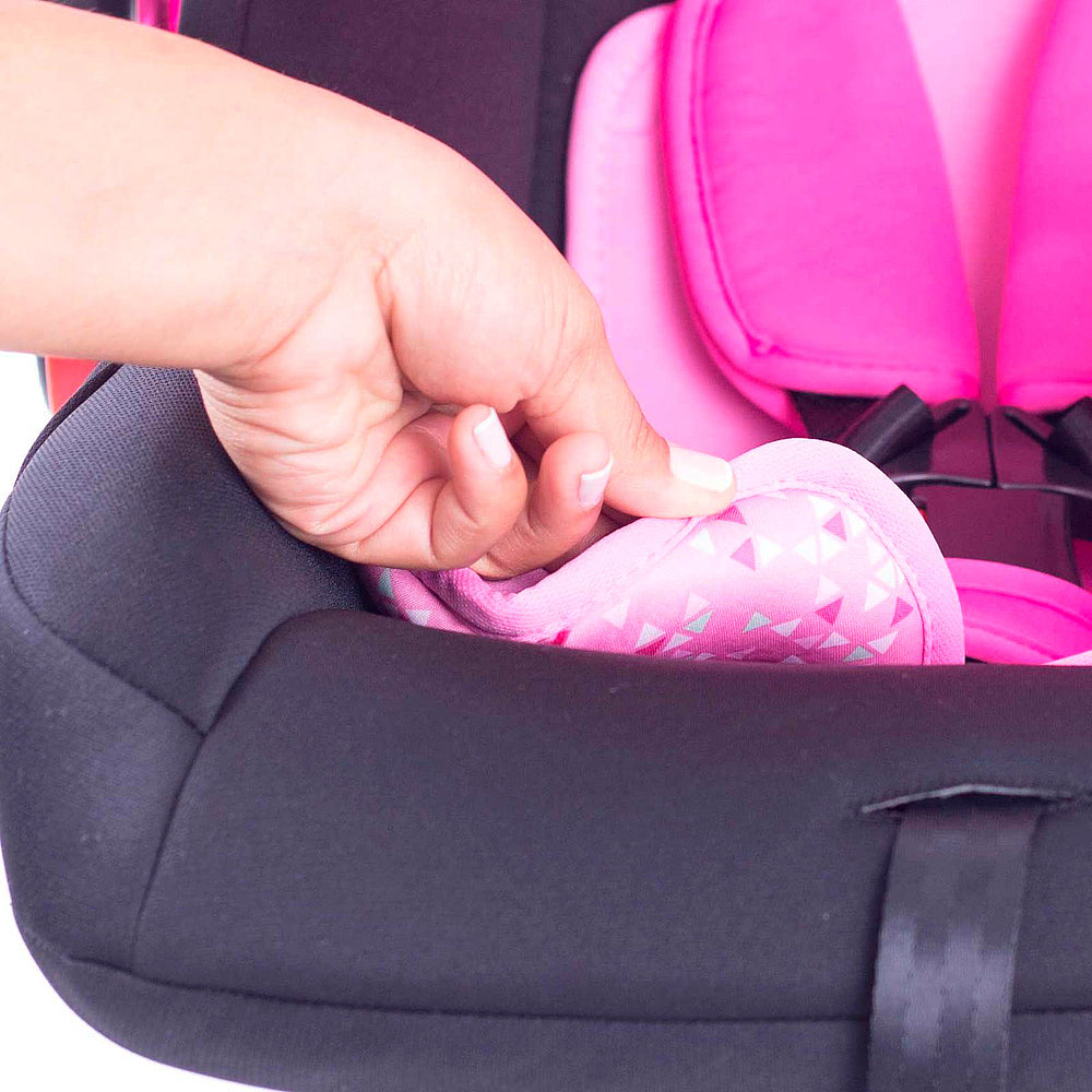 Confortável, com protetores de ombros acolchoados e as almofadas redutoras, que podem ser removidas conforme o crescimento do bebê, além da praticidade da limpeza, com toda a capa podendo ser removida e a lavagem feita à máquina.