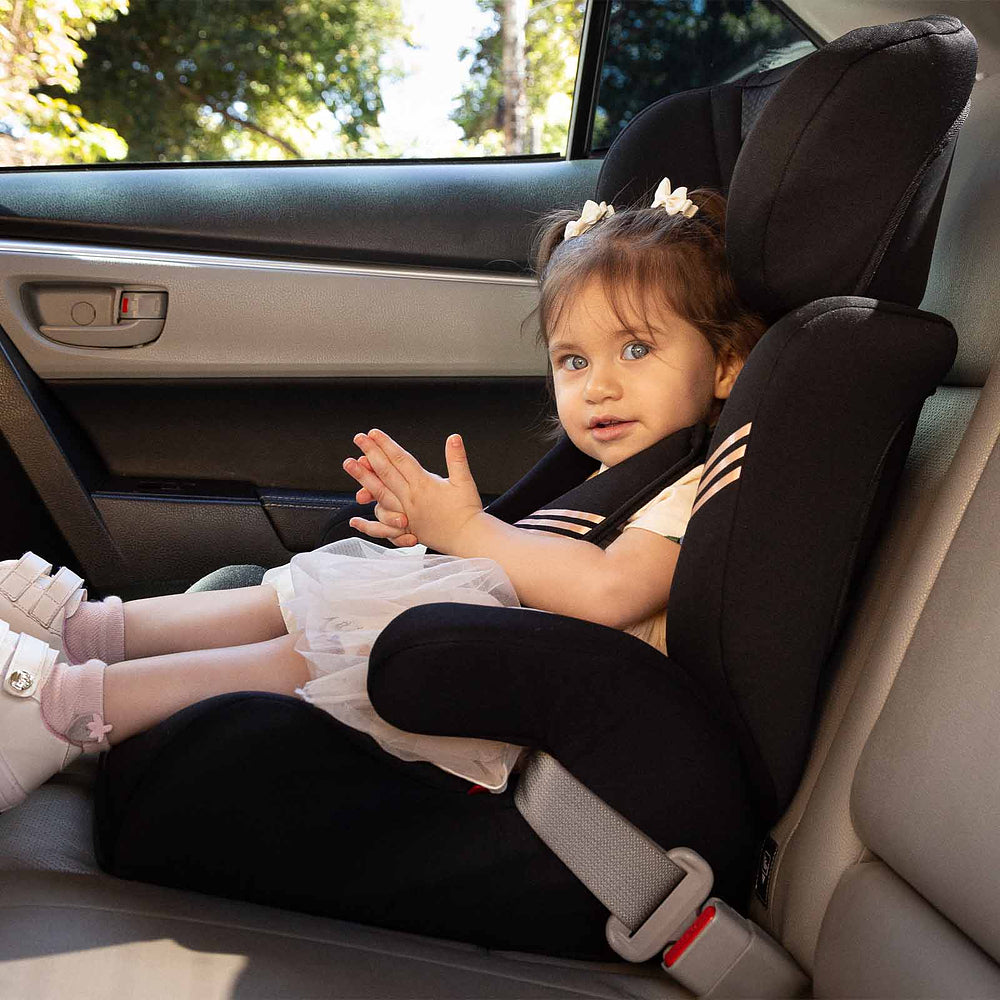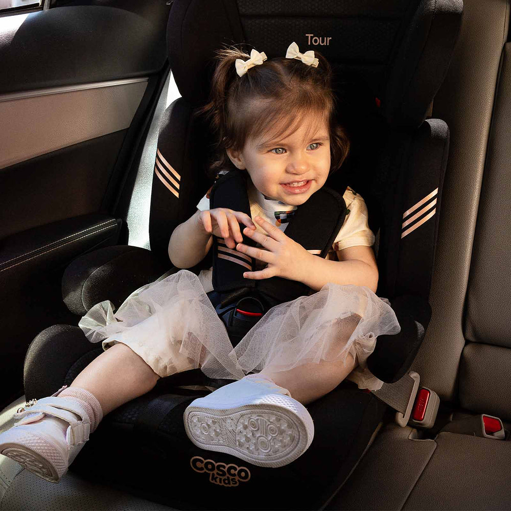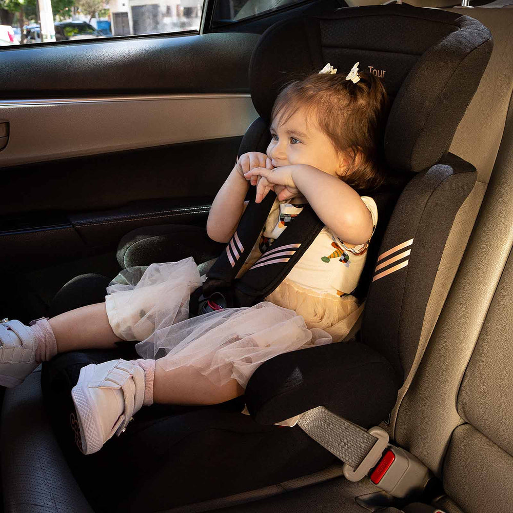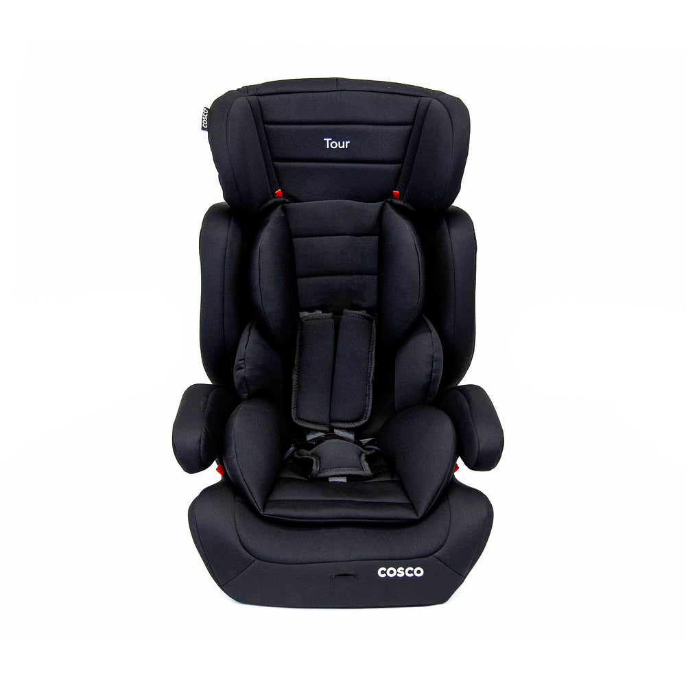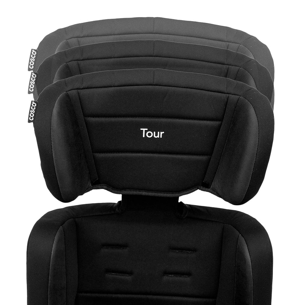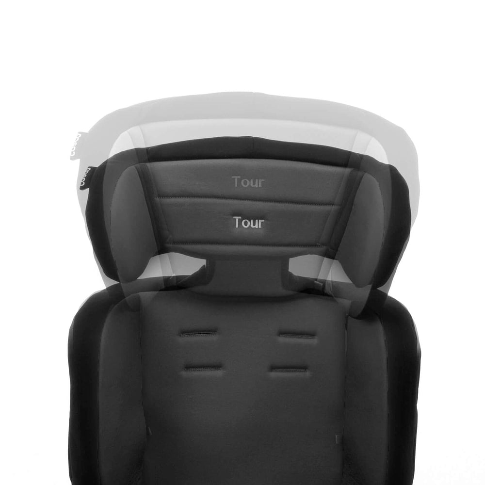 Ela acomoda os menores com almofadas redutoras que podem ser removidas quando não forem mais necessárias. A altura do apoio de cabeça também é ajustável: vai crescendo com seu filho, junto com a altura do cinto da cadeirinha. No grupo 2, a partir de 15 kg, com seu filho sentadinho, cinto do veículo é que vai dar conta do recado, passando sobre ele. E quando ele já estiver no grupo 3, ou seja, a partir dos 22 kg, você pode tirar a parte do encosto e usar só o assento da Tour, como um booster.