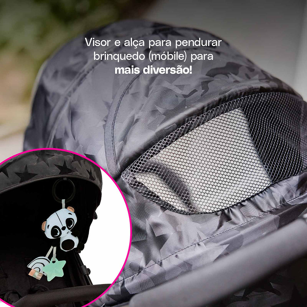 | Capota | Ampla com visor e proteção UV30+ |