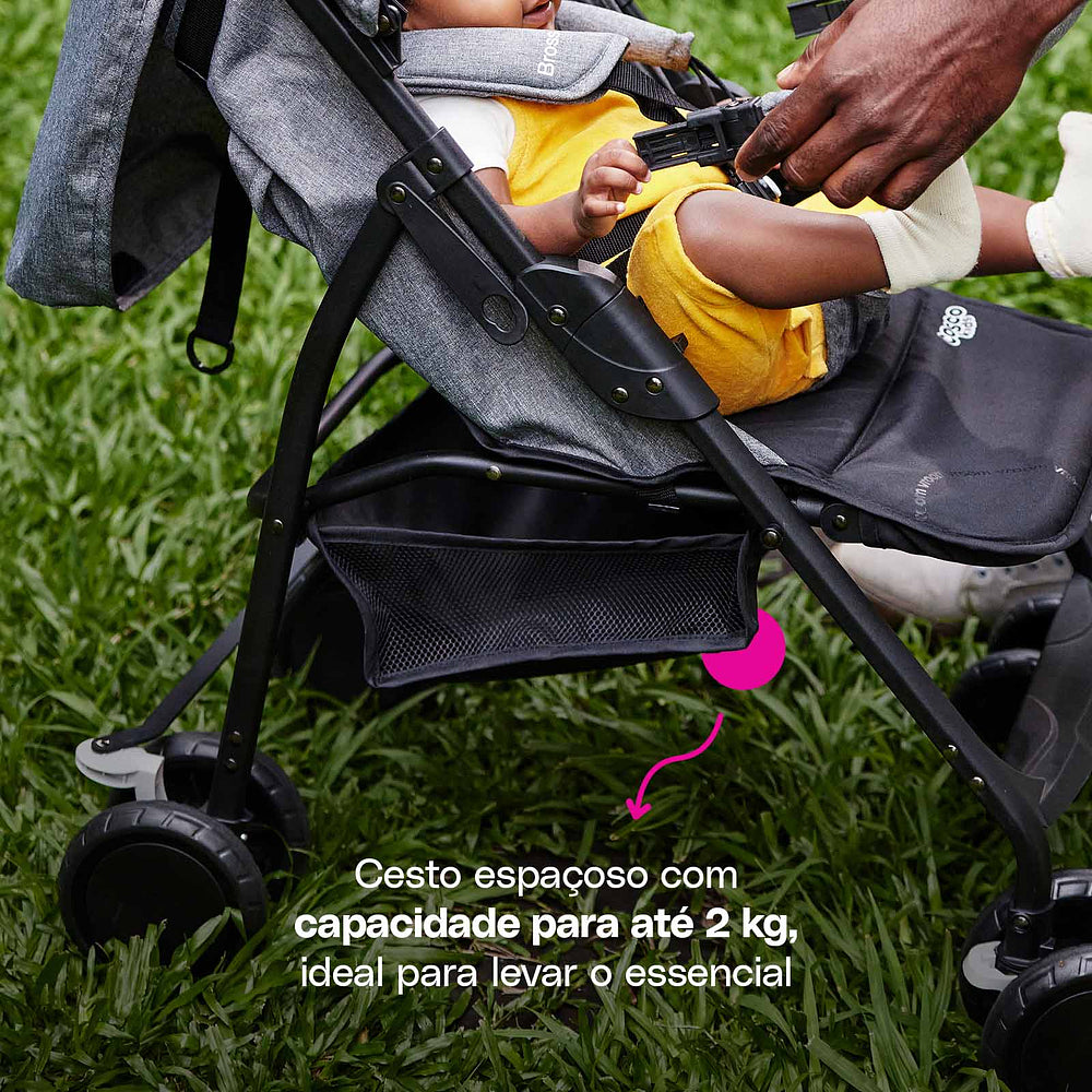 Quando o assunto é praticidade, o Bross não deixa a desejar! Ele é um dos carrinhos mais leves do mercado, super tranquilo de levar para onde quiser e economiza espaço na hora de guardar em casa ou no carro. Com um cesto espaçoso que suporta até 2 kg, você carrega brinquedos, fraldas ou aquele lanchinho sem complicação.