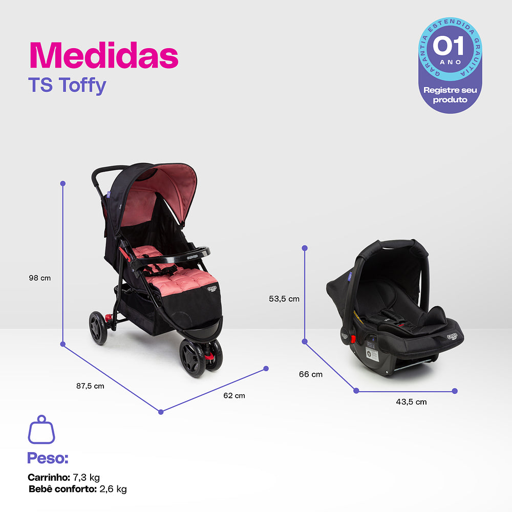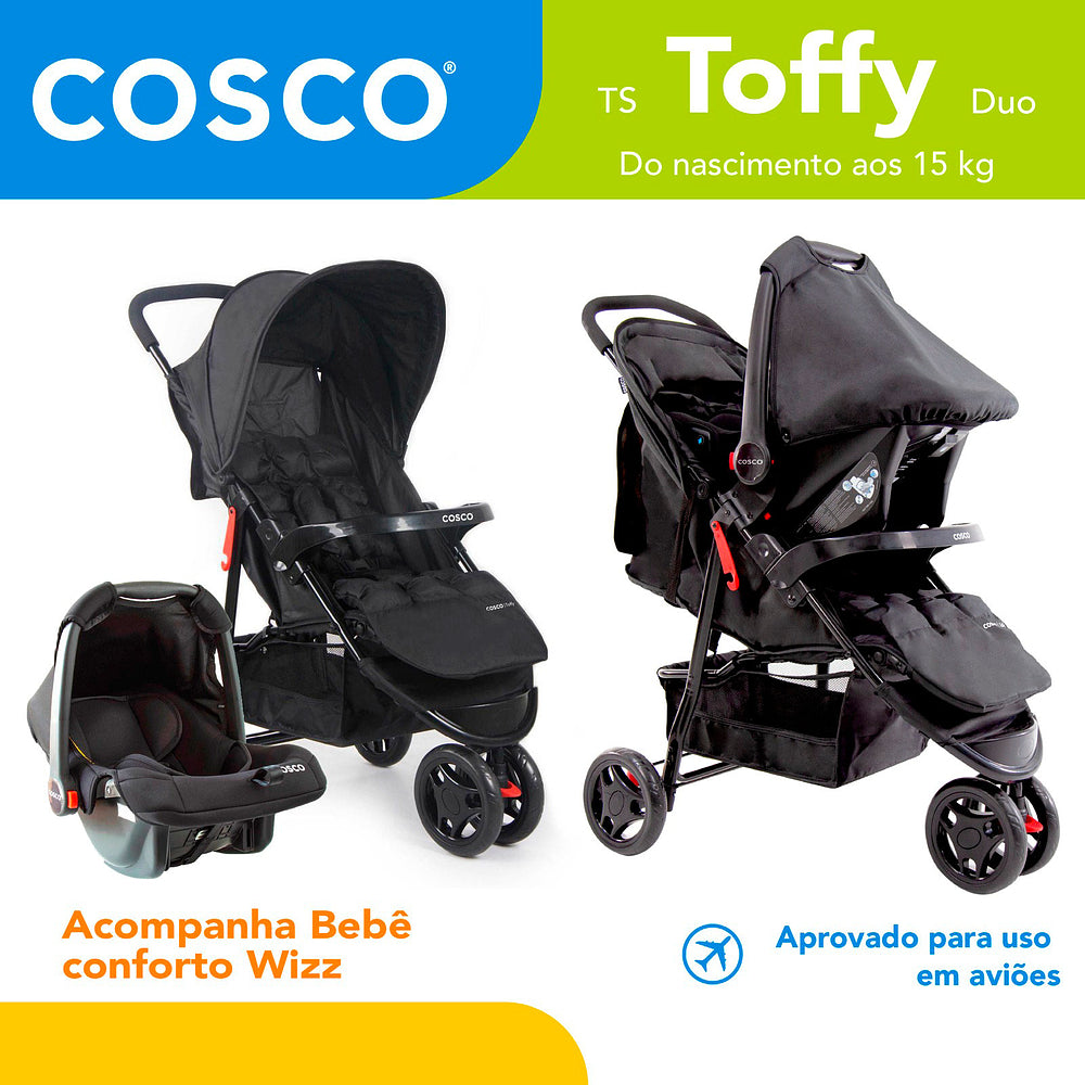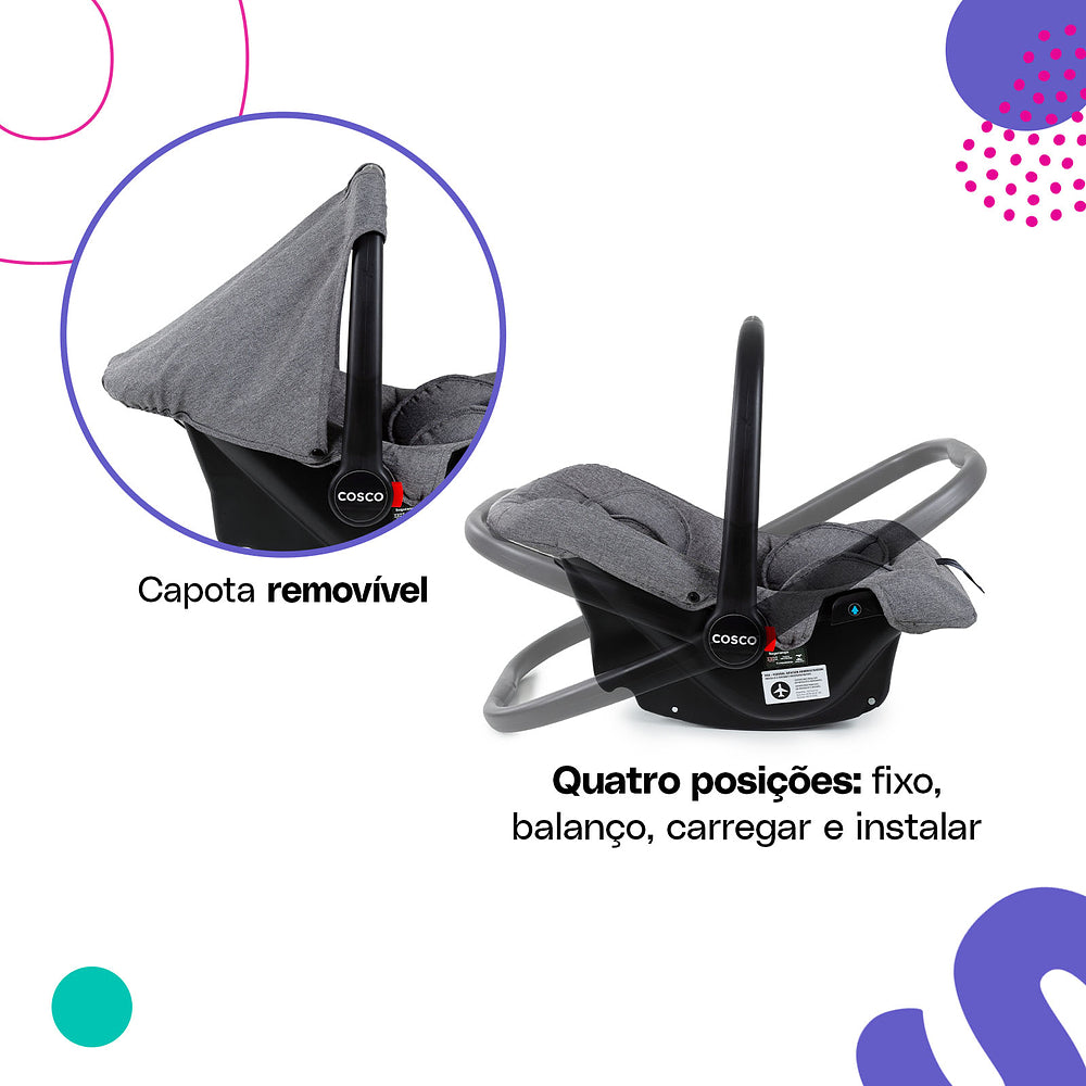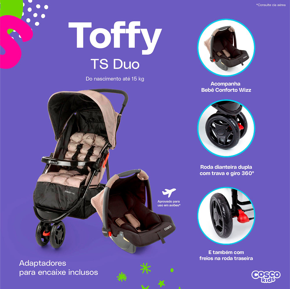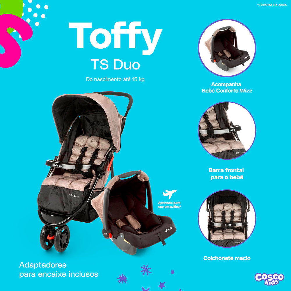 Com o Travel System Toffy Cosco Kids, você tem tudo o que precisa para passeios cheios de estilo, conforto e segurança!